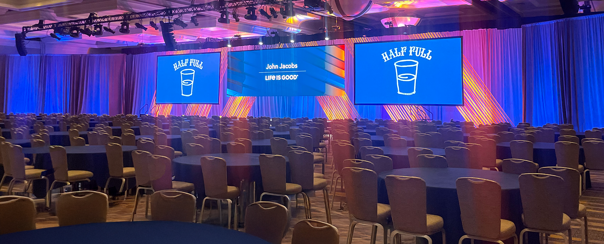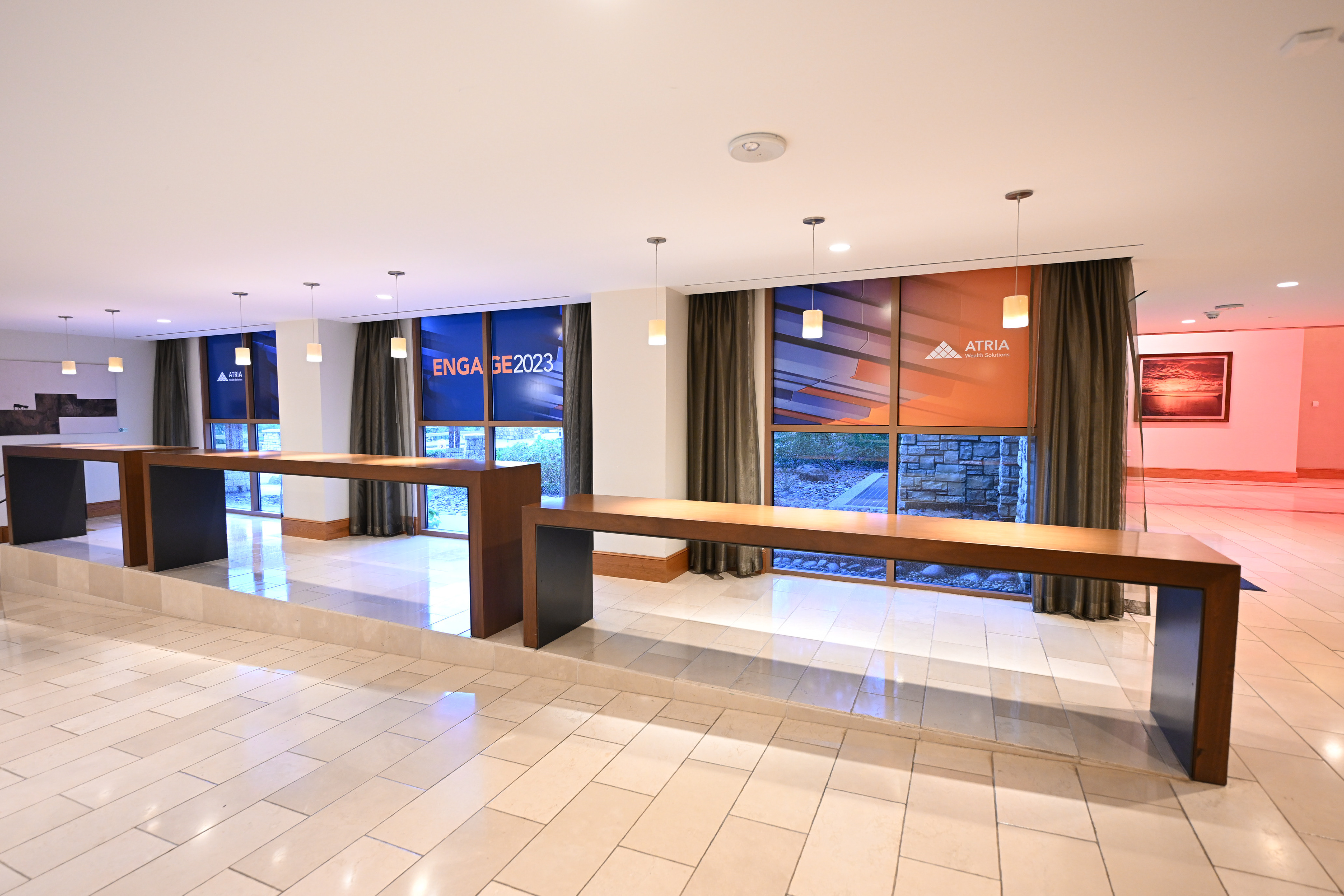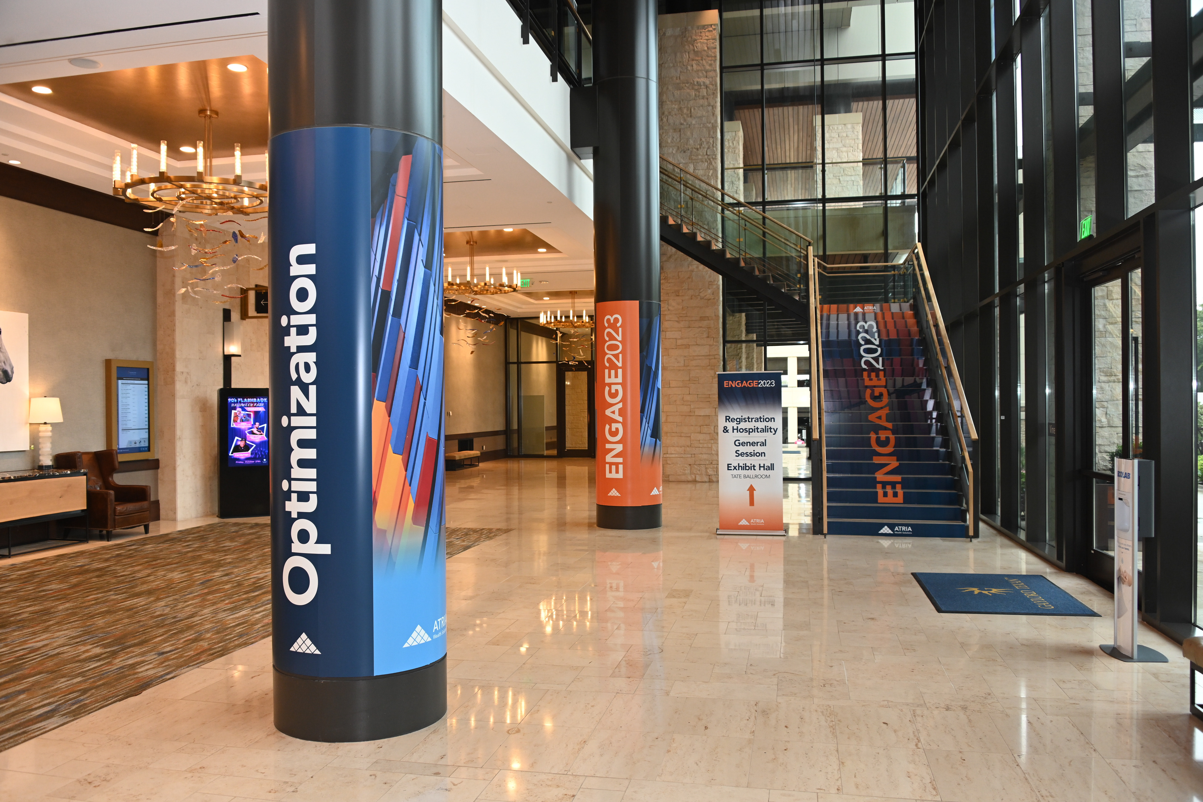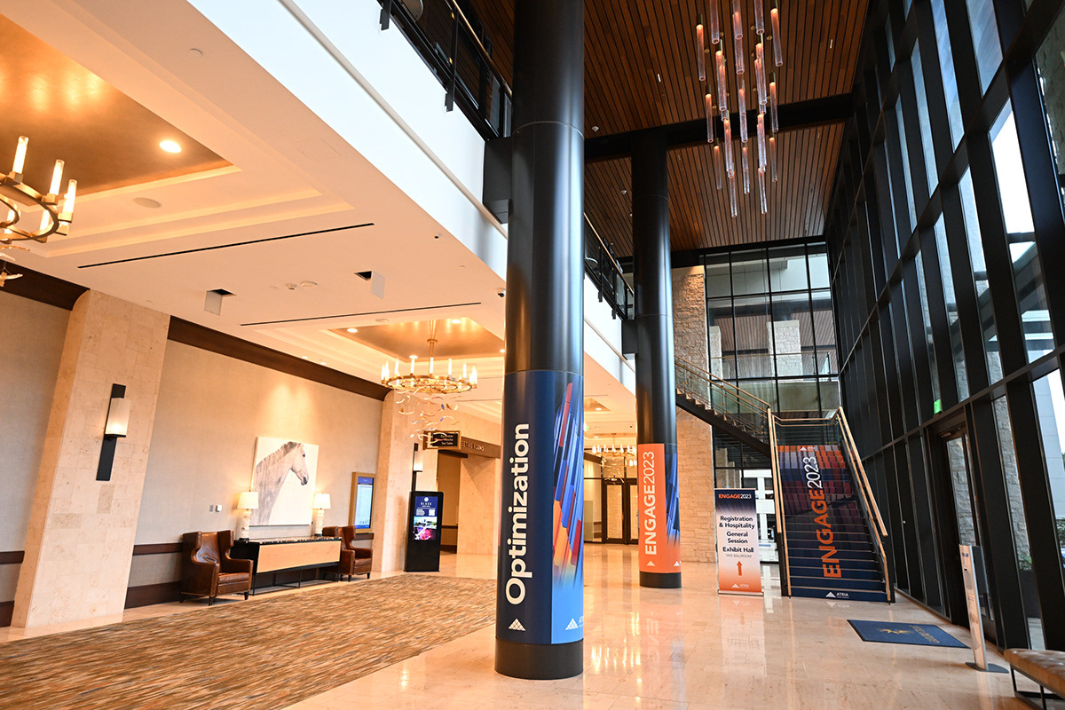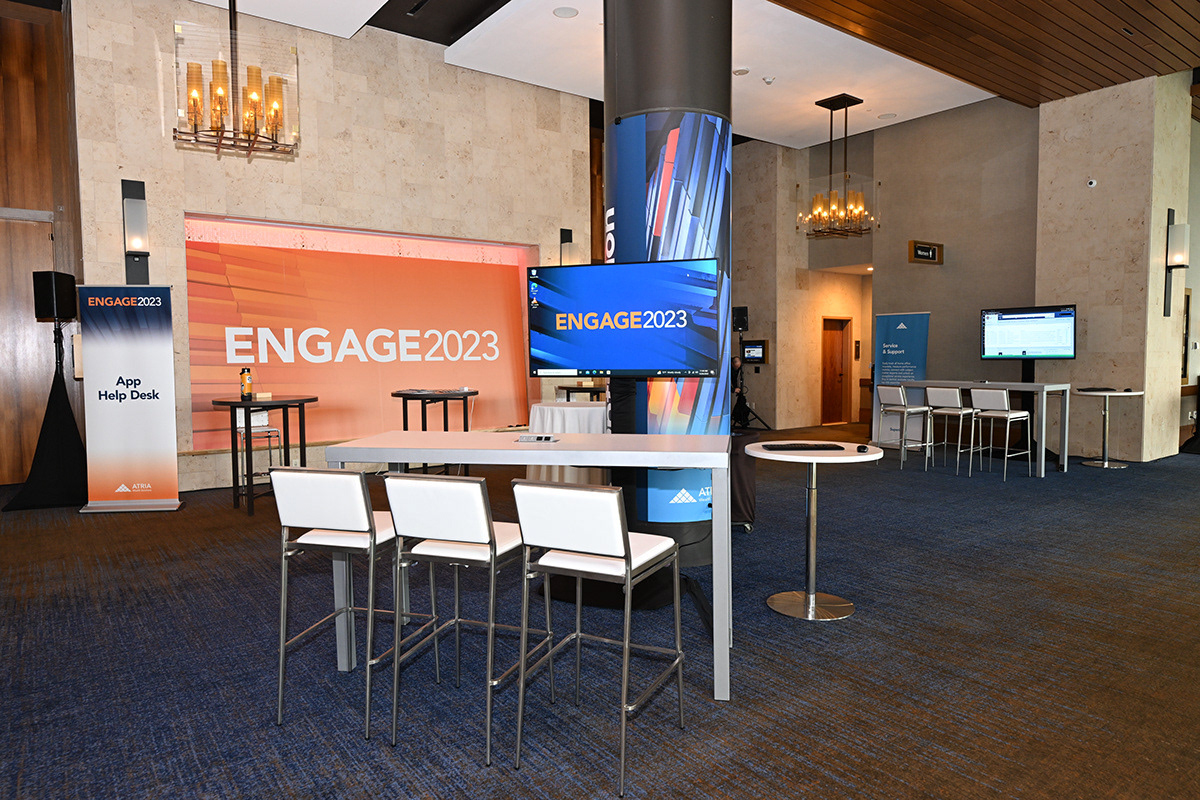 Atria and its subsidiaries hosted multiple national conferences each year, each with different audiences, themes, and venues. The challenge was to create distinctive, high-impact environments—within budget—while maintaining a consistent, premium brand experience across all events.
