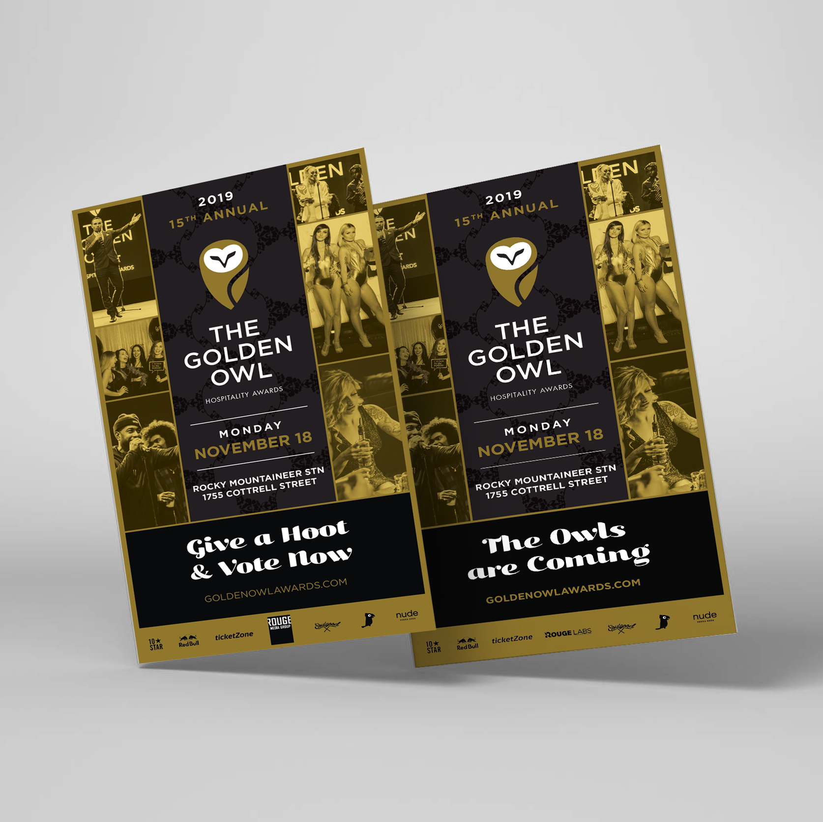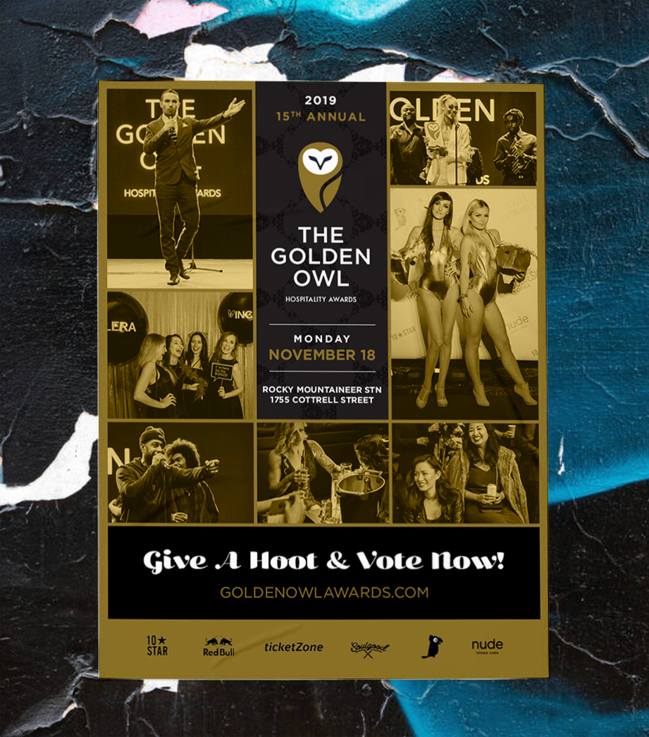 Celebrating its 15th year, The Golden Owl Awards needed a cohesive, elevated visual identity that reflected its status as Vancouver’s most anticipated hospitality industry event. The challenge was to create a unified look that felt prestigious, festive, and contemporary—while working seamlessly across both print and digital touchpoints.
